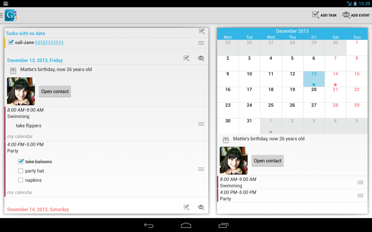 Day by Day is a planning application designed to fully implement Google Calendar and Google Tasks as all-in-one Android application. With its help you can plan your future schedule using any Android device and this schedule will be available for all your phones and tablets connected to Internet.Features